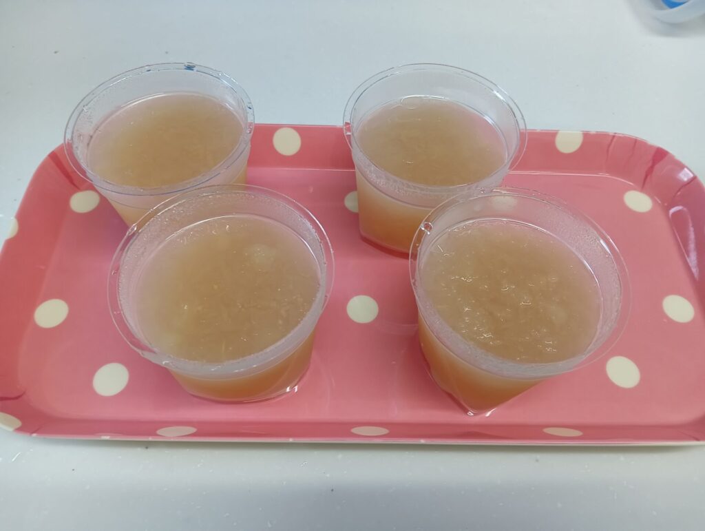 お誕生日に合わせて、食育活動で梨ゼリーとさつまいもチーズケーキ作りをしました✨️