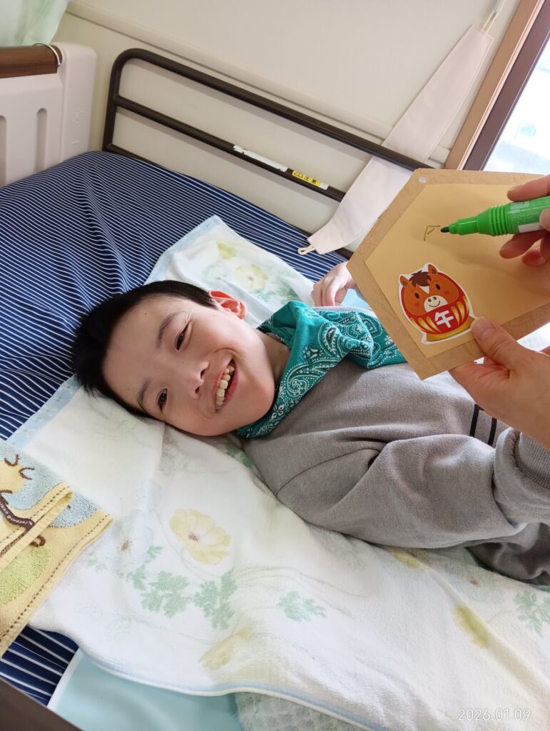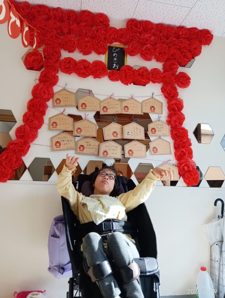 1月の壁画作成は、お正月をテーマに絵馬を書きました。