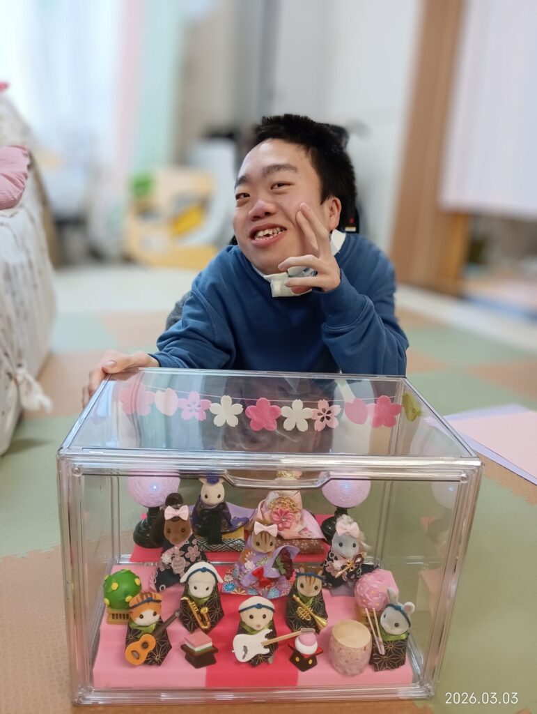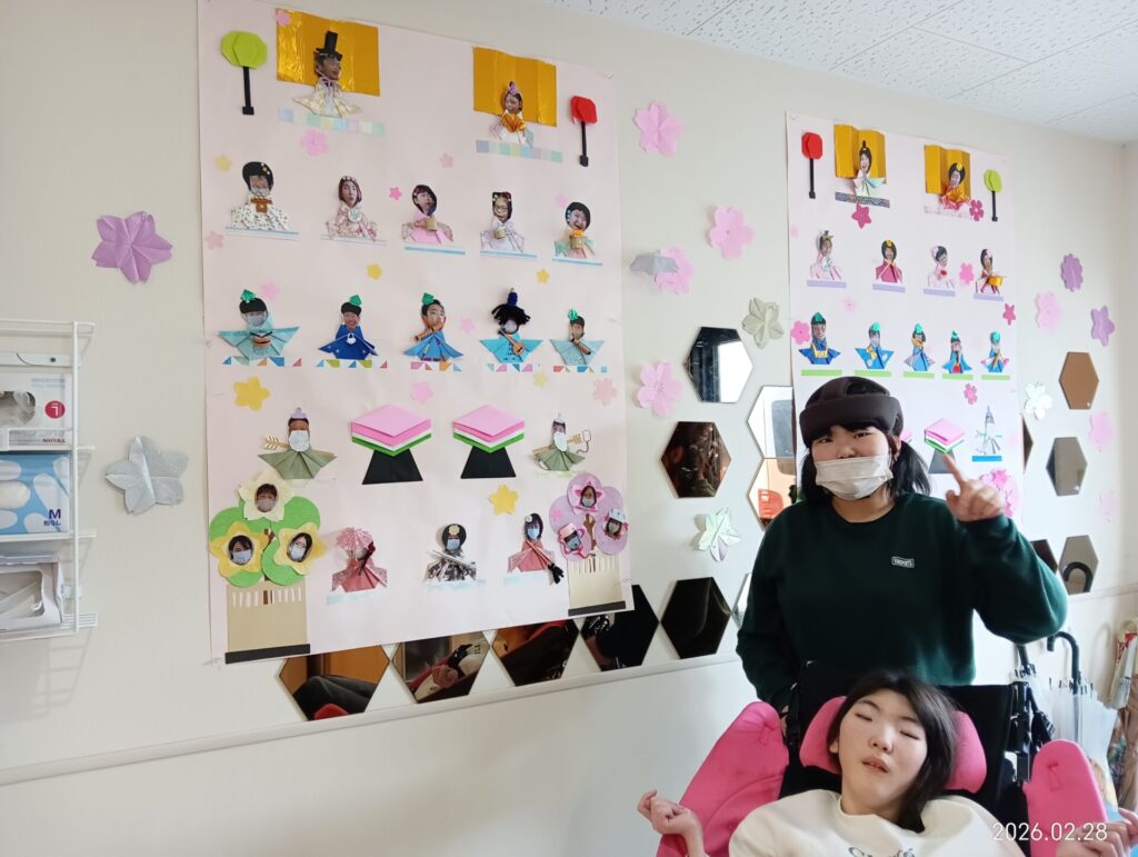 3月3日はひな祭り🎎ということで、雛人形の壁画作りとひな人形の飾りをしました。