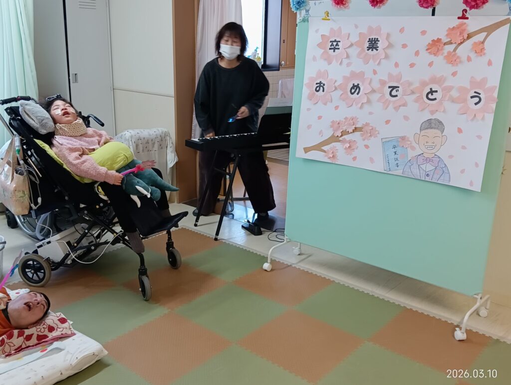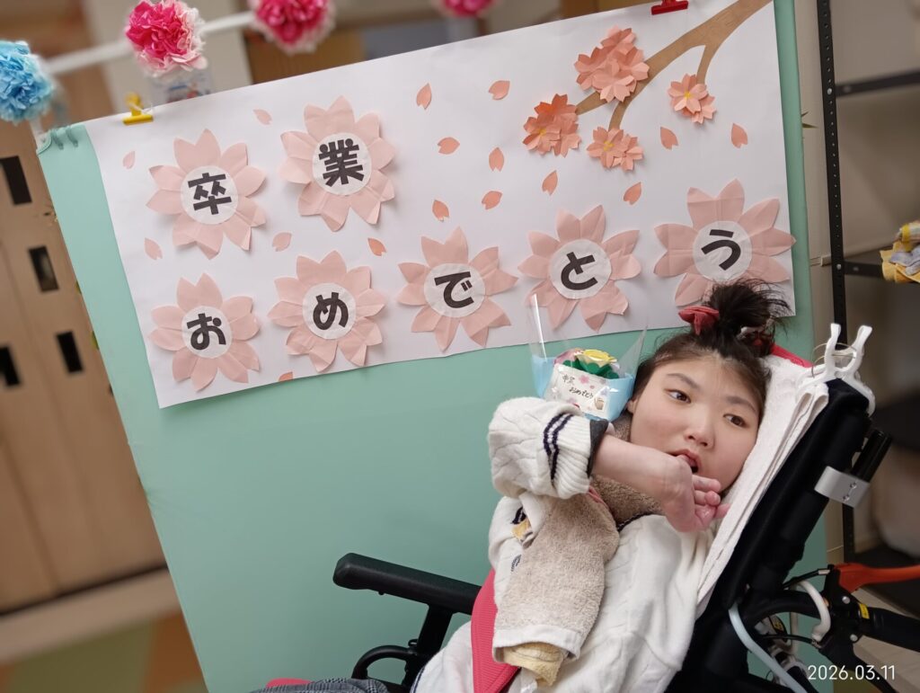 卒業生の方は花束と一緒にお写真を撮ったり、放課後デイサービス卒業の方へは色紙も一緒にお渡しさせていただきました!